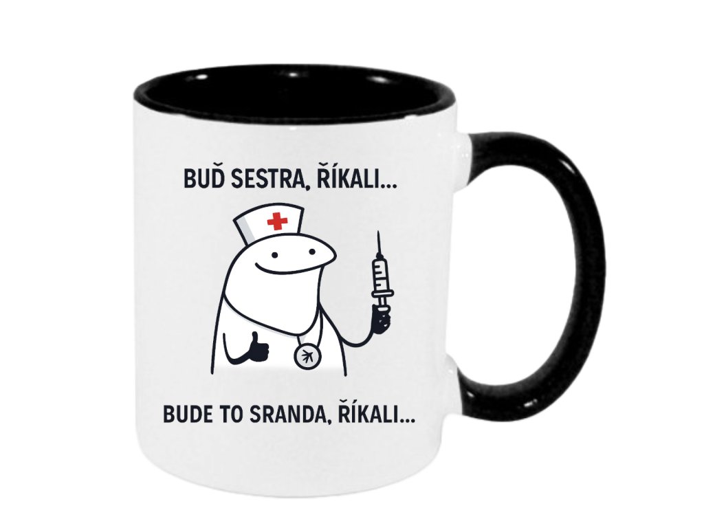 Oblíbený meme motiv sesterské čepce. Sarkastický hrnek pro sestřičky, které berou svou práci s humorem.