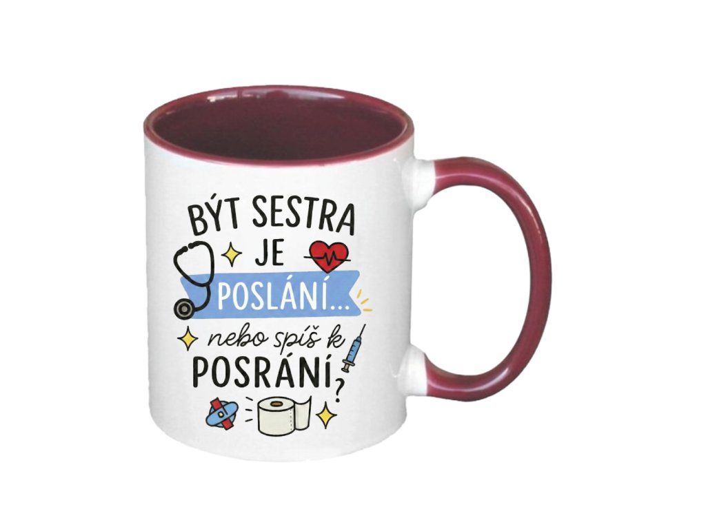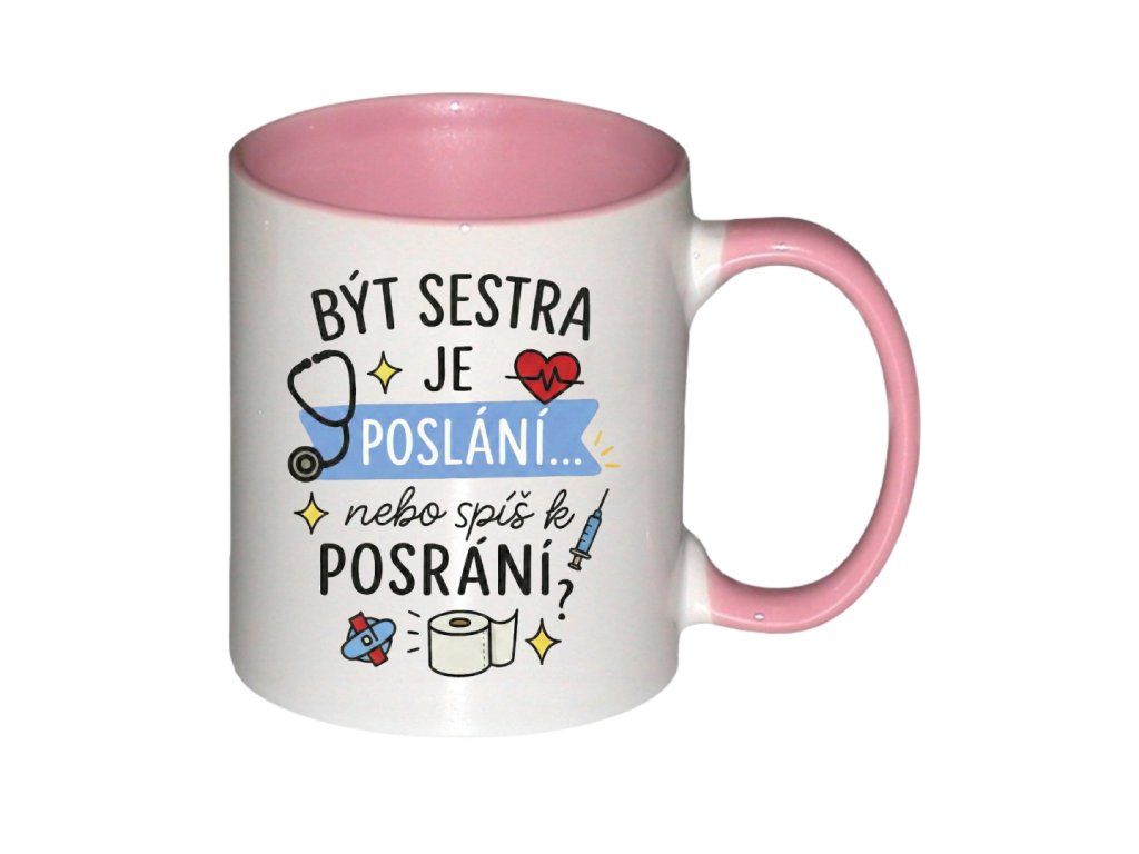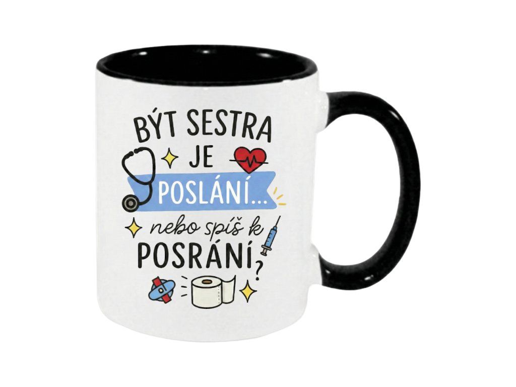 Práce zdravotní sestry není jen povolání, je to životní styl plný adrenalinu, laskavosti a občas i situací, které vyžadují hodně silný žaludek a ještě silnější kafe. Tento hrnek s hravým textem „Být sestra je poslání... nebo spíš k posrání?“ je tu pro všechny hrdinky v bílém (nebo modrém a zeleném), které neztrácejí smysl pro humor ani po dvanáctce.